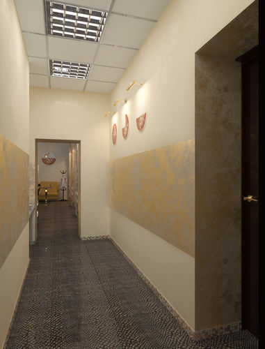 Так в интерьере появилась цветовая гамма - нежно - лимонный оттенок стен в сочетании с декоративной штукатуркой "меридиональ" под золото.