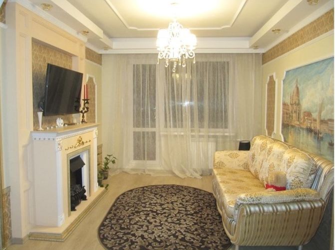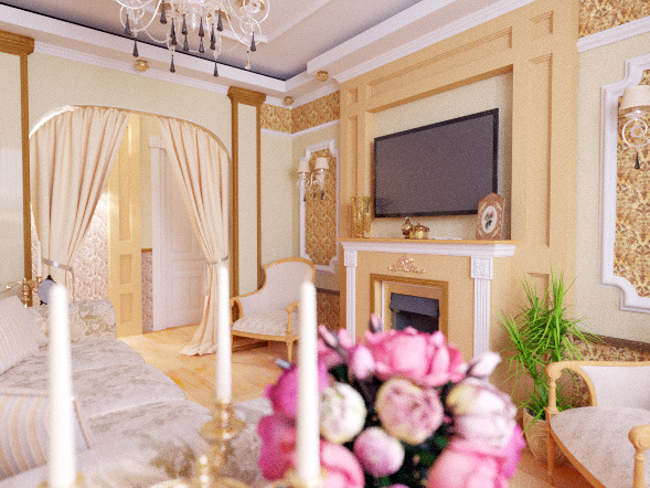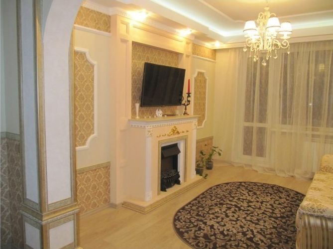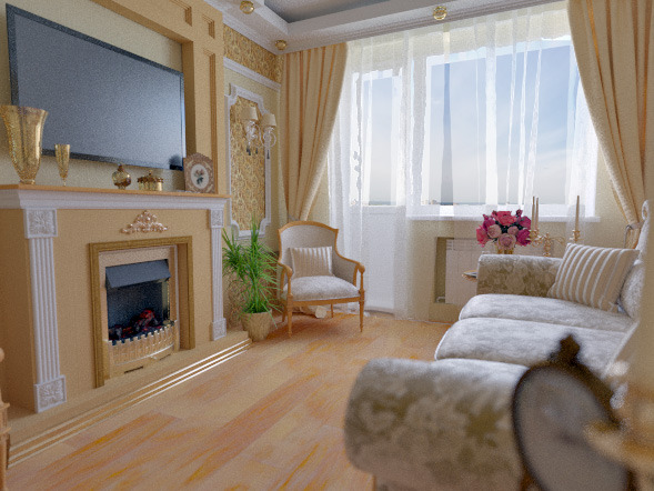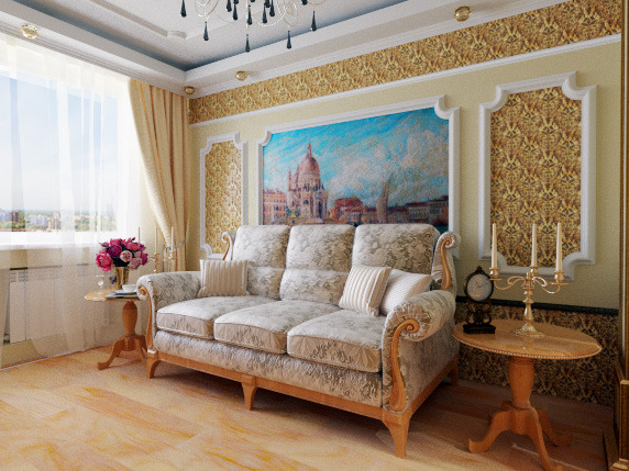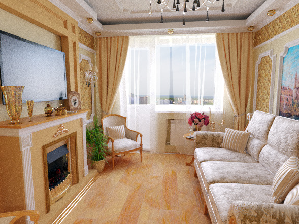 Главной задачей проекта стояла перепланировка гостиной и выполнение ее в классическом стиле без больших затрат.