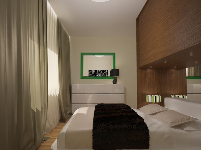 Основной задачей в данном проекте было создание, в первую очередь, функционального пространства для жизни на относительно небольшой площади. Разделив комнату на две зоны конструкцией кровать-шкаф, у нас получилась полноценная спальня. Зеркало в изголовье кровати визуально увеличило комнату. В гостиной удобно расположилась диванная зона, состоящая из мобильных модулей-кресел в актуальной сейчас полосатой обивке. Составленная, будто конструктор Lego, система полок и ящиков вдоль стены позволяет хранить кучу мелочей. Сместив немного дверной проем, мы создали удобный рабочий уголок. Глухая стена гостиной преобразилась с помощью фото-принта. Кухню тоже разделили на две зоны: столовая и зона готовки. Особое ощущение объема помещению придают фотообои с панорамой города. Цветовая гамма этой квартиры - легкие жизнерадостные оттенки, голубой, светло-зеленый, терракотовый - создают позитивное настроение и делают интерьер не скучным!