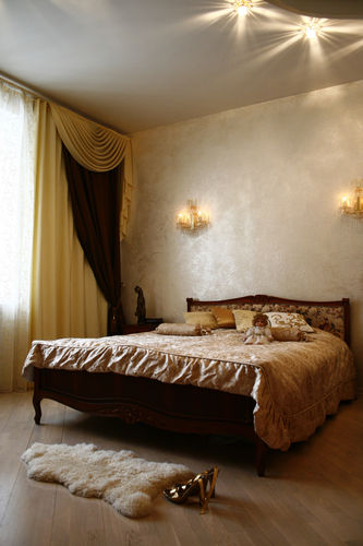 Вся квартира окутана романтической пеленой Ренессанса. Палитра интерьера основана на гармоничном сопоставлении кофейных, сливочных и шоколадных тонов, создавая в квартире приятную атмосферу уюта и благородной старины.