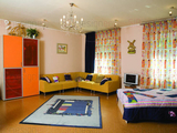 Большой кирпичный коттедж – около 400 кв. м представляет собой необычное многоуровневое строение. В нем нет темных коридоров и тесных комнат. Напротив, в доме ощущается пространство, одно помещение плавно перетекает в другое. «В моем представлении дом должен быть теплым, просторным, светлым. И мы стремились именно к этому. Поэтому здесь более 20 окон, широко использованы системы подсветки, люстры и разнообразные светильники, мало дверей (они присутсвуют лишь в приватных комнатах) и нет перегородок», – рассказывает Александр Филиппов. Чтобы пространство было по-настоящему теплым и уютным, автор по максиму использовал натуральные материалы и в отделке, и в обстановке – кожу, камень, дерево, шерсть, мех и др.