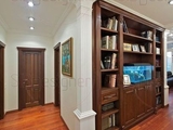Повернув налево, мы попадаем в гостиную. Здесь стоят круглый стол со стульями, прозрачная витрина, камин и часы с боем, актуальные во все времена. При этом зал отлично оборудован: хозяин-меломан пожелал видеть в своем доме только лучшую акустику. Современный уголок с множеством дисков примиряется с «аристократической» частью с помощью длинного кожаного дивана, выполняющего роль своеобразной перегородки. Преимуществом квартиры является эркерное окно, сквозь которое видно движение города: вечером здесь можно наблюдать движение сотен огоньков от машин, наслаждаясь домашней тишиной.