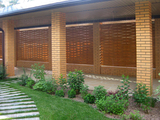 Чтобы в зимнее время перемещение от гаража к дому было максимально комфортным, соорудили крытую галерею. Внутри она вымощена плиткой из натурального камня, стена выглядит ажурной, поскольку выполнена из плетёных реек. Внешним украшением галереи стал цветник, в котором высажены декоративные кустарники и эффектные многолетние растения. Почва в цветнике между растениями замульчирована корой, гармонирующей по цвету с цоколем здания. Это предохраняет землю от высыхания и делает жизнь растений комфортней.