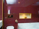 К строгим классическим чертам с современными репликами мы возвращаемся на втором этаже, где расположились кабинет, спальня заказчиков и примыкающая к ней богатая по своему наполнению ванная комната.