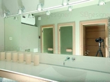 Двухкомнатная квартира, с которой предстояло поработать, имела простую и правильную архитектуру внутреннего пространства. Поэтому потребовались лишь небольшие планировочные изменения. Так, автор проекта расширила ванную комнату, разместив там сауну, душевой бокс и трёхметровую полку с раковиной из жидкого камня.