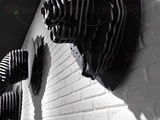 Современный стиль этого офиса включает в себя элементы лофта, который проявляет себя в кладке из декоративного кирпича, поверхностях, выполненных под бетон, а также в светильниках. Гамма интерьера настраивает на сосредоточенную работу. Особую роль здесь играет темно-серый цвет (антрацит). Кстати, вопреки расхожему мнению черный потолок не оказывает гнетущего воздействия, напротив, выглядит невесомо и «глубоко». Не обошлось и без элементов декора, которые придали обстановке оригинальность. Головы животных, выполненные из фанеры, украсили одну из главных стен. Чтобы разбить монотонность оставшегося коридора, его декорировали постерами.