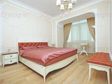 Пол выложен керамогранитом в комплекте с системой «теплый пол». Стены украшены декоративной штукатуркой и обоями. Элегантная светлая мебель отдаленно напоминает вещи в стиле модерн.