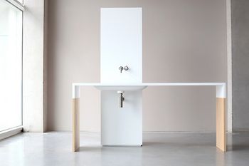 1721Датская компания NotOnlyWhite выпустила новинку с неожиданной опцией. Коллекция Air представляет собой тонкую столешницу, в которую вмонтирована раковина. При грамотной установке концепт может выступать практичным разделителем. К тому же новинка дополняется шкафом, полки которого обращены в обратную сторону.