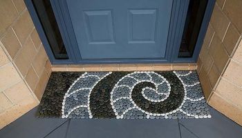 Сделать такую красоту своими руками очень просто. Небольшие плоские камни нужно просто приклеить к основе: ткани, резине, сетке и т. п. С помощью разноцветных камешков можно выкладывать узоры и надписи.