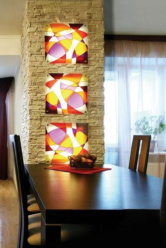 Витражи, классические или выполненные в технике фьюзинг, способны преобразить интерьер. Если их дополнить подсветкой, эффект от игры цвета и света усиливается.
